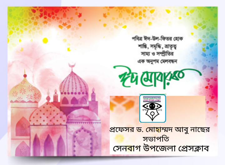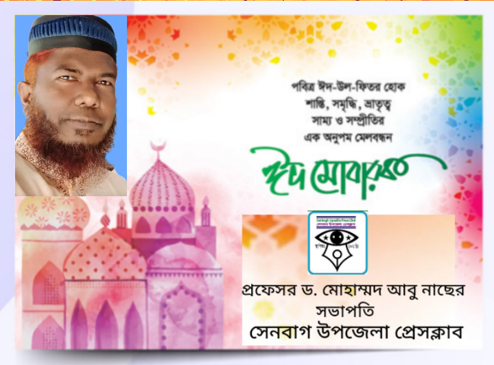 সেনবাগ উপজেলার সকল জনগণ সহ দেশ-বিদেশের সবাইকে পবিত্র ঈদ উল ফিতরের শুভেচ্ছা জানিয়েছেন নোয়াখালী সাংবাদিক ইউনিটি’র সদস্য ও সেনবাগ
