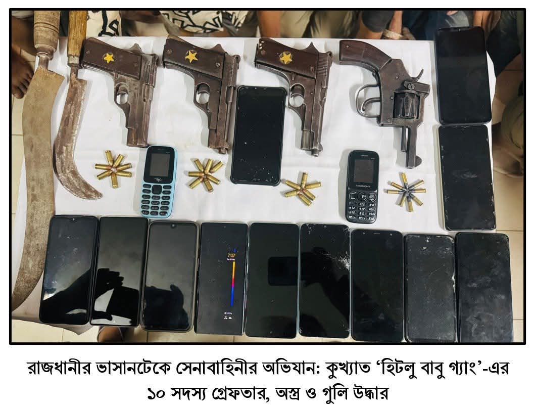 নিজস্ব প্রতিবেদক | ঢাকা | ২০ মে ২০২৫, মঙ্গলবার রাজধানীর মাটিকাটা এলাকায় একটি গোপন সন্ত্রাসবিরোধী অভিযানে বাংলাদেশ সেনাবাহিনী ‘হিটলু বাবু